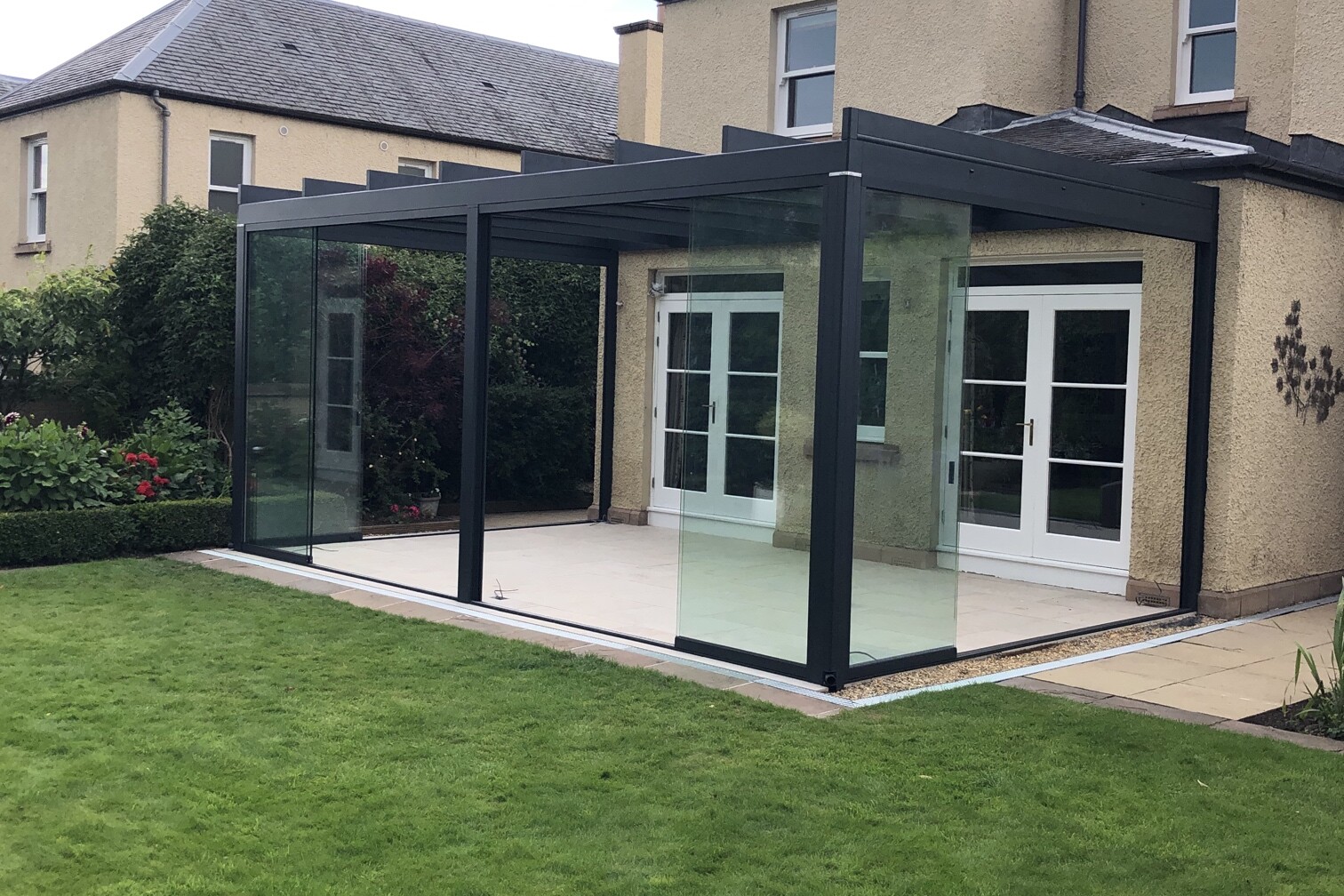 Combine with moveable single glazed sliding door panels to create an enclosed Glass Room - with no obstruction!